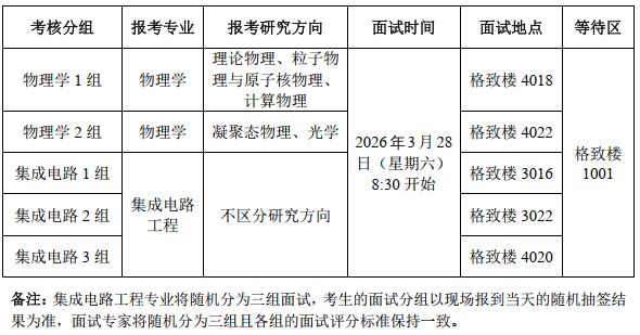 考生在复试报到时领取《复试考生思想政治素质和品德考核情况表》(附件3)并提前填写个人信息,按照学院规定的时间和地点参加考核。请各位考生提前20分钟至考核等候地点。考核将分组进行,具体分组情况将在考核前及时公布。