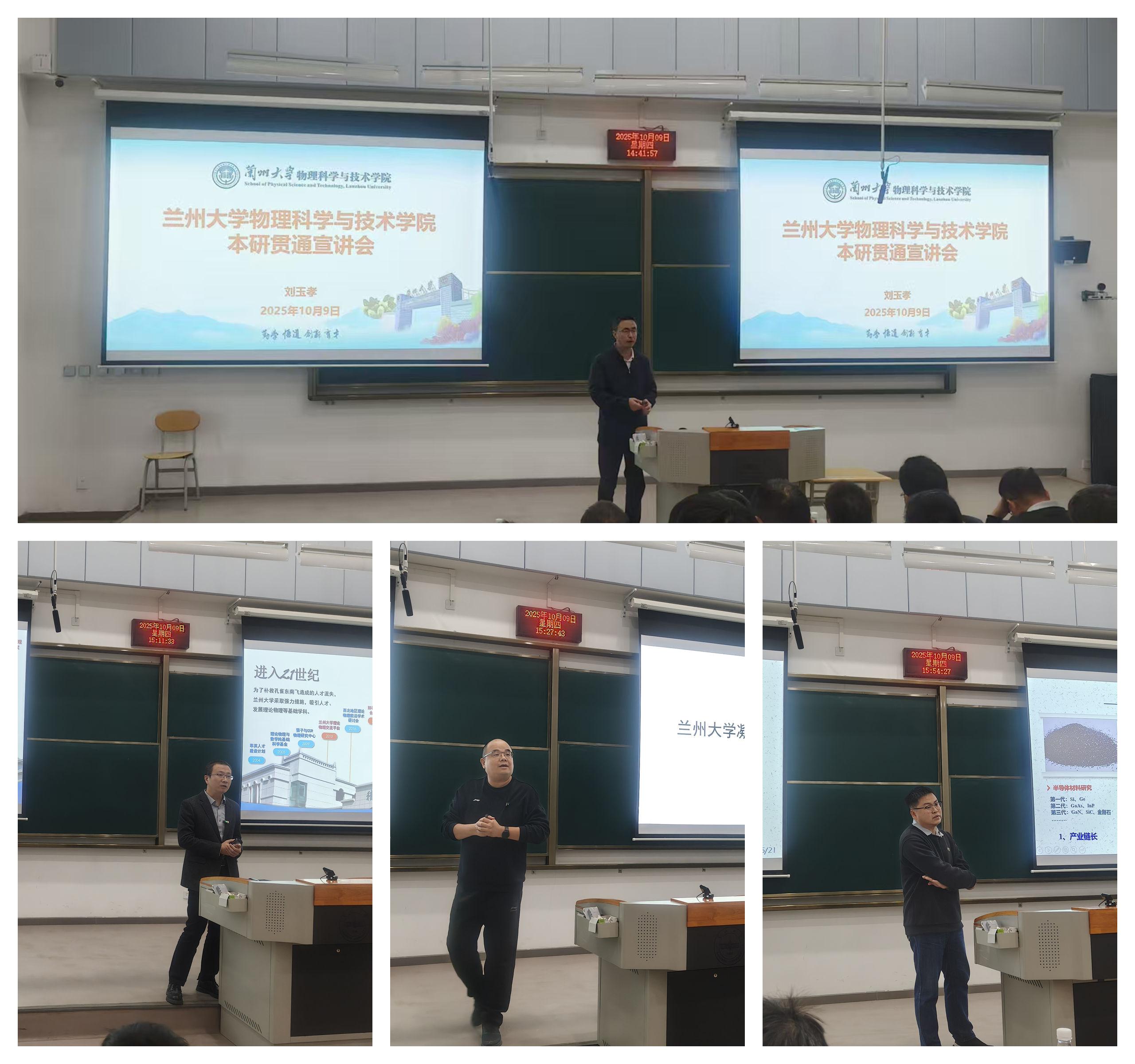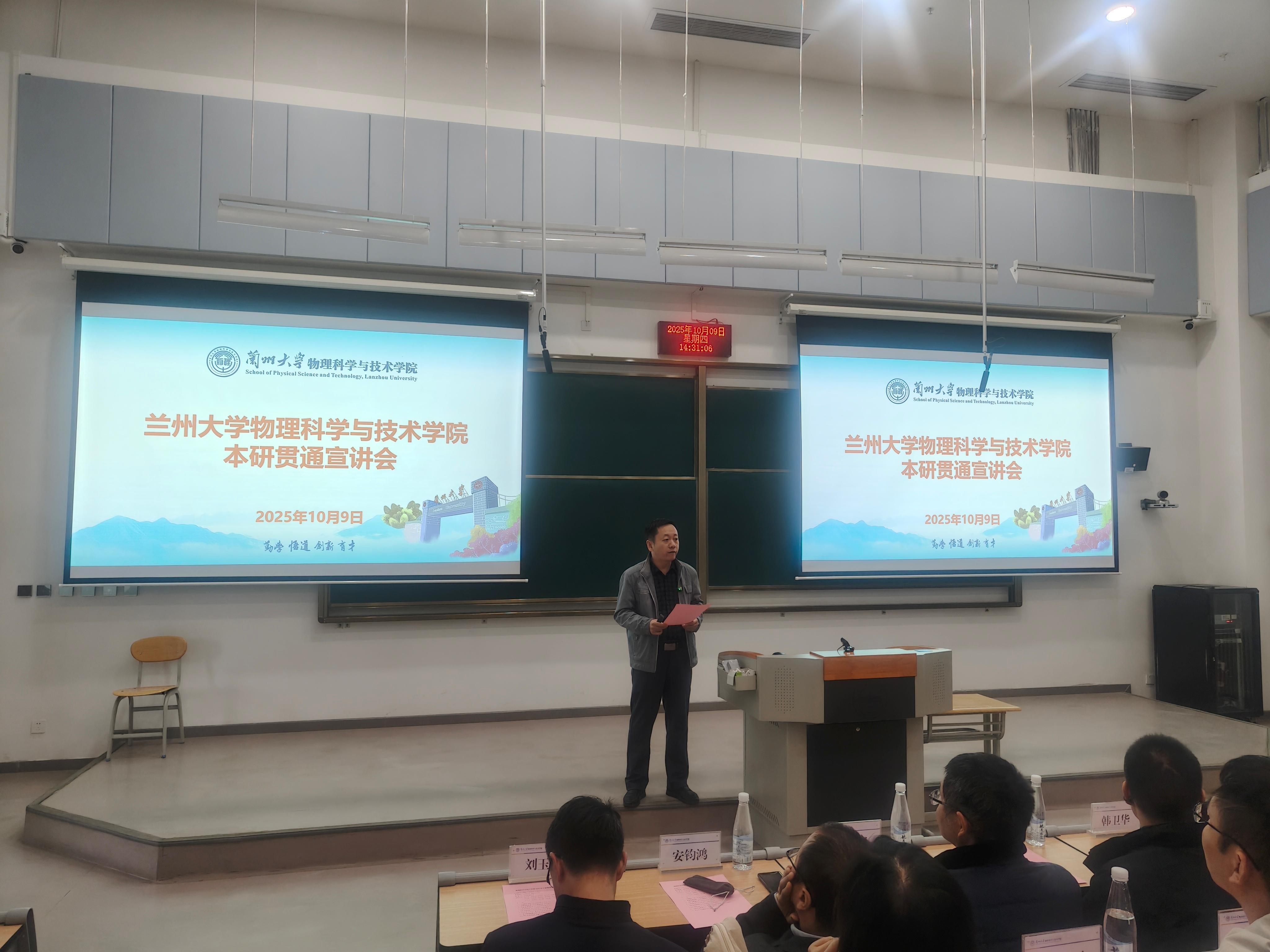 10月9日下午,学院在榆中校区秦岭堂B109教室举行2023级本科生本研贯通宣讲会。学院副院长刘玉孝、王建波,各学科点负责人及代表安钧鸿、蒋长军、靳志文,导师团队代表,本科生教学秘书、辅导员,研究生秘书以及2023级本科生参加了本次活动。活动由王建波主持。