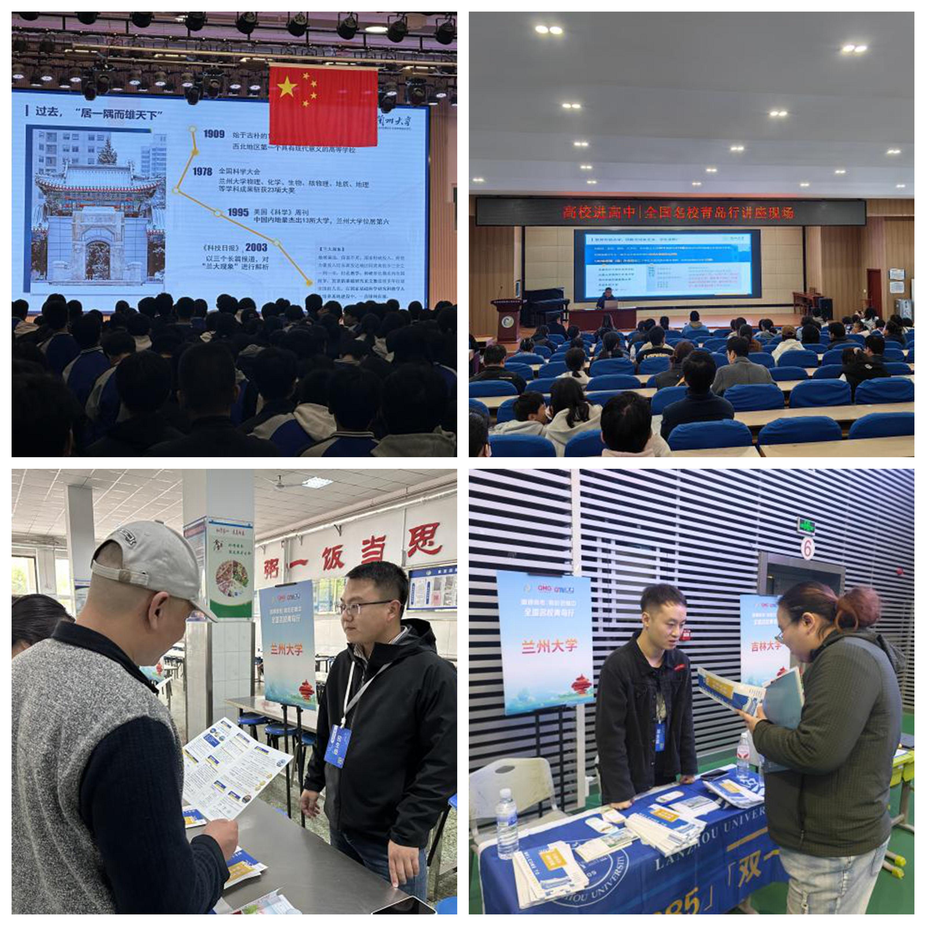 在青岛地区,招宣组范正焜、樊金雷两位老师参加了青岛招生考试院和青岛广播电视台联合主办的“高校进高中——全国名校青岛行”活动。分别深入青岛一中、青岛西海岸一中、青岛大学附属中学、青岛五十八中、城阳二中等五所高中。通过参加招生宣讲、发放招生简章、开展现场咨询等形式,两位老师系统介绍了兰州大学的历史底蕴、学科优势、特色专业和招生政策,指导和帮助优秀学生和家长持续关注兰州大学。
