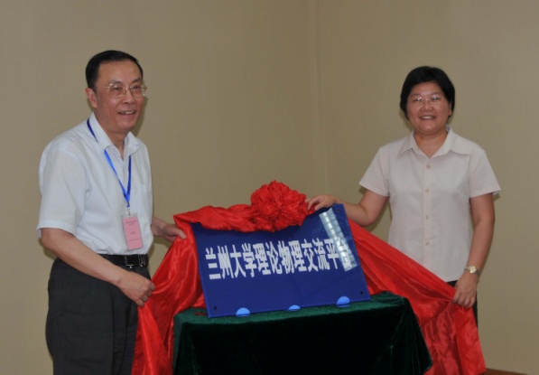 基金委副主任沈文庆院士(左)和兰州大学时任副校长郑晓静院士(右)为兰州大学“理论物理交流平台”成立揭幕。